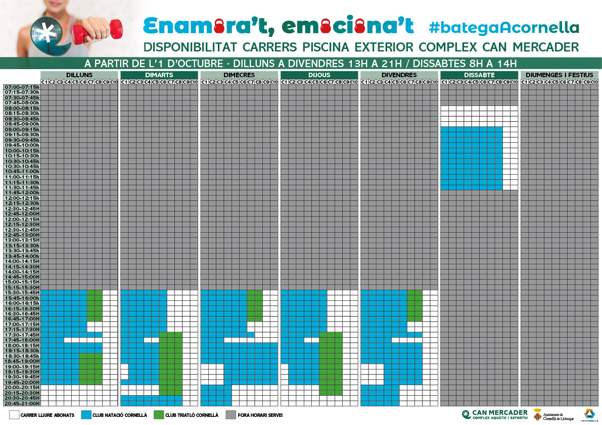 Por otra parte, en el Complex Aquàtic i Esportiu Can Mercader, seguimos trabajando y preparando servicios complementarios que esperamos que puedas utilizar.